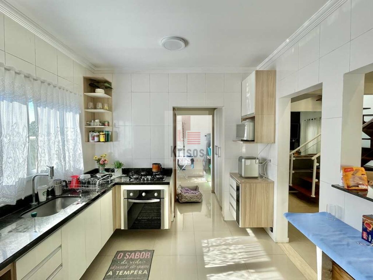 Dependência de Serviço e Garagem: A dependência de serviço e a área de serviço ensolarada com lavanderia fechada, tanque e armário trazem praticidade para o dia a dia. A garagem comporta até 4 veículos, sendo 2 cobertas.