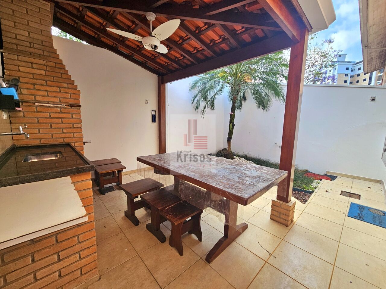 A área de lazer conta com uma ampla churrasqueira coberta, jardim paisagístico e telas mosquiteiras em todas as janelas. Bem iluminada com face norte, a casa recebe sol durante todo o dia e oferece excelente privacidade por não ter vizinhos de frente. Com piso laminado nos quartos e banheiros equipados com box de vidro, o imóvel está em excelente estado de conservação.